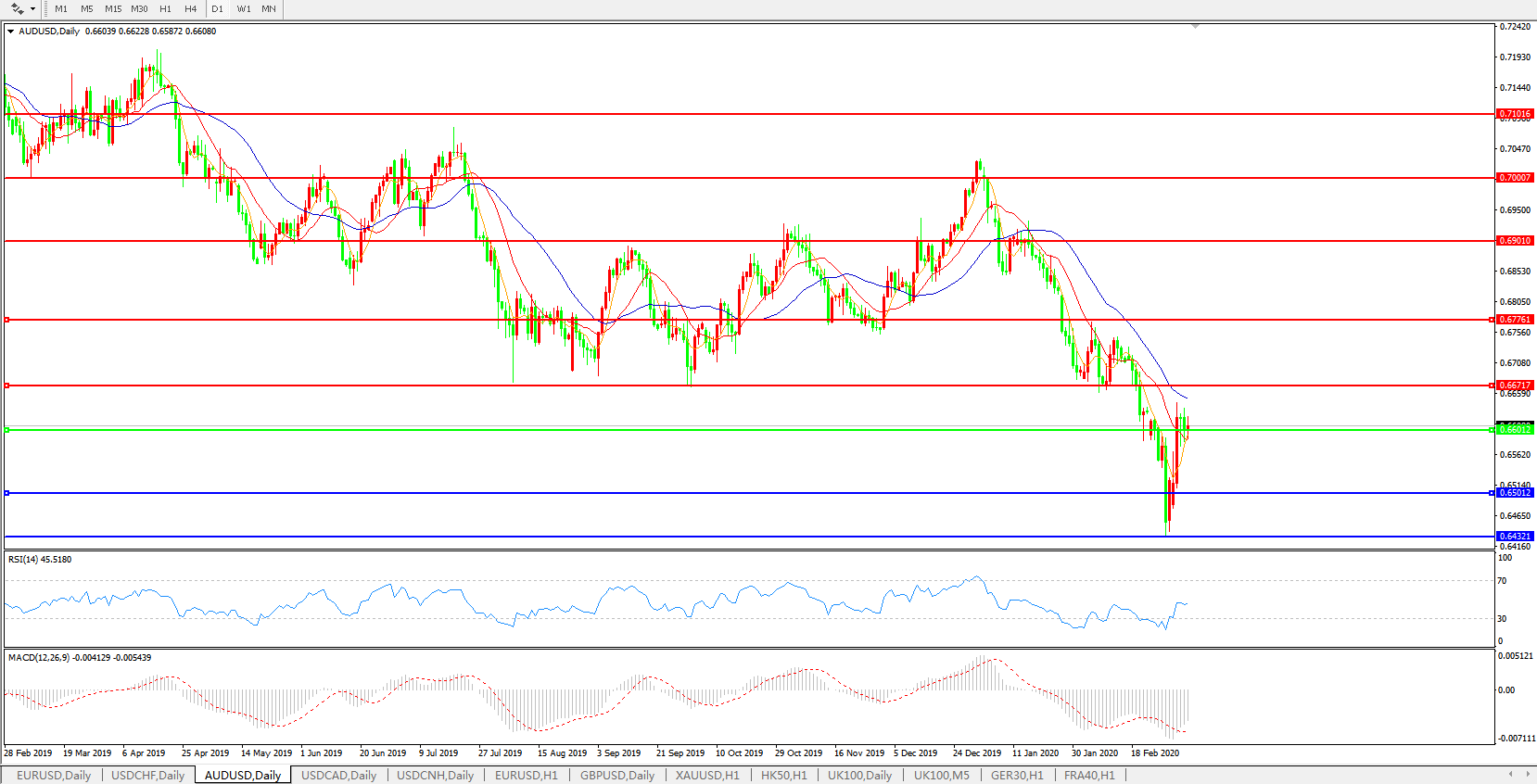 技术面简析:日图均线呈空头排列但短期均线拐头迹象明显,汇价持续走升徘徊在0.66关口附近,MACD于0轴下方逐步止跌且量能收缩,RSI小幅回升,预计汇价大概率将止跌回升上行。