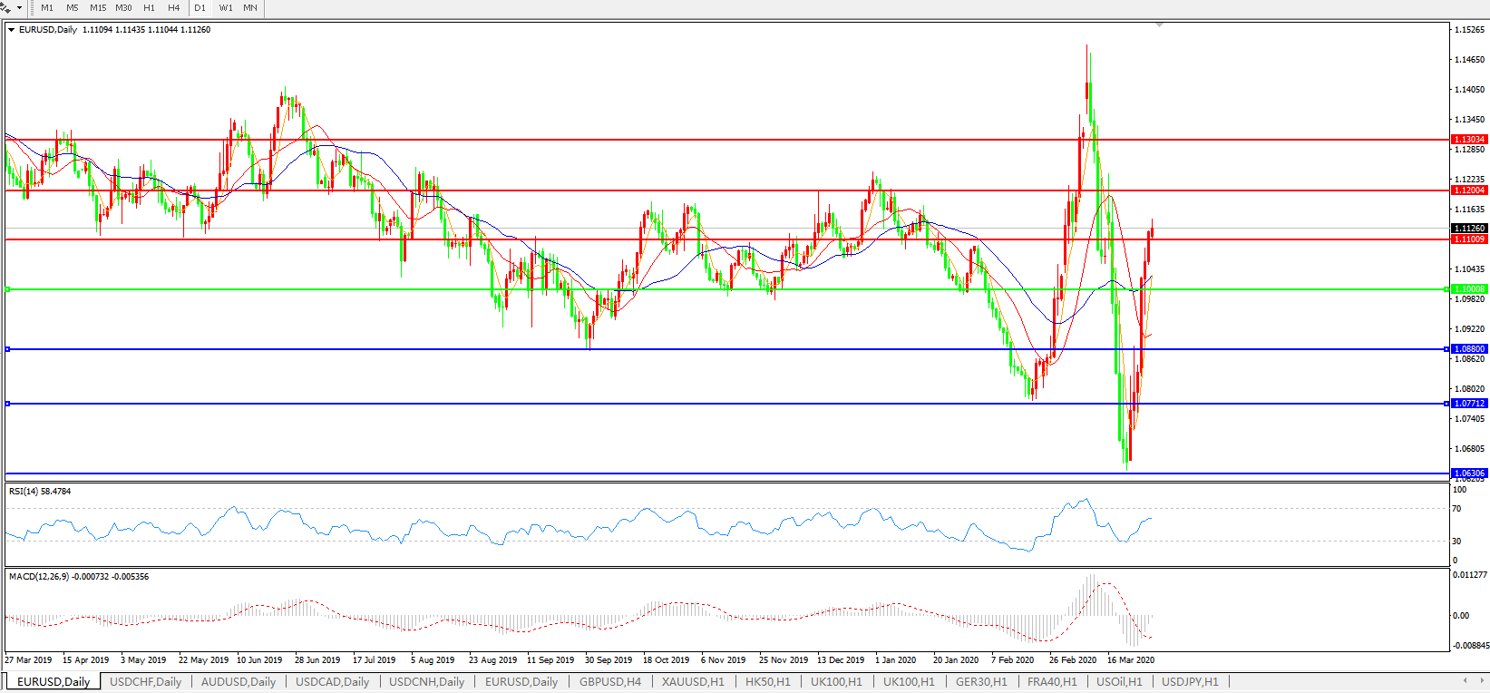 意大利疫情肆虐强管控延续,欧美持续上行站上1.11关口