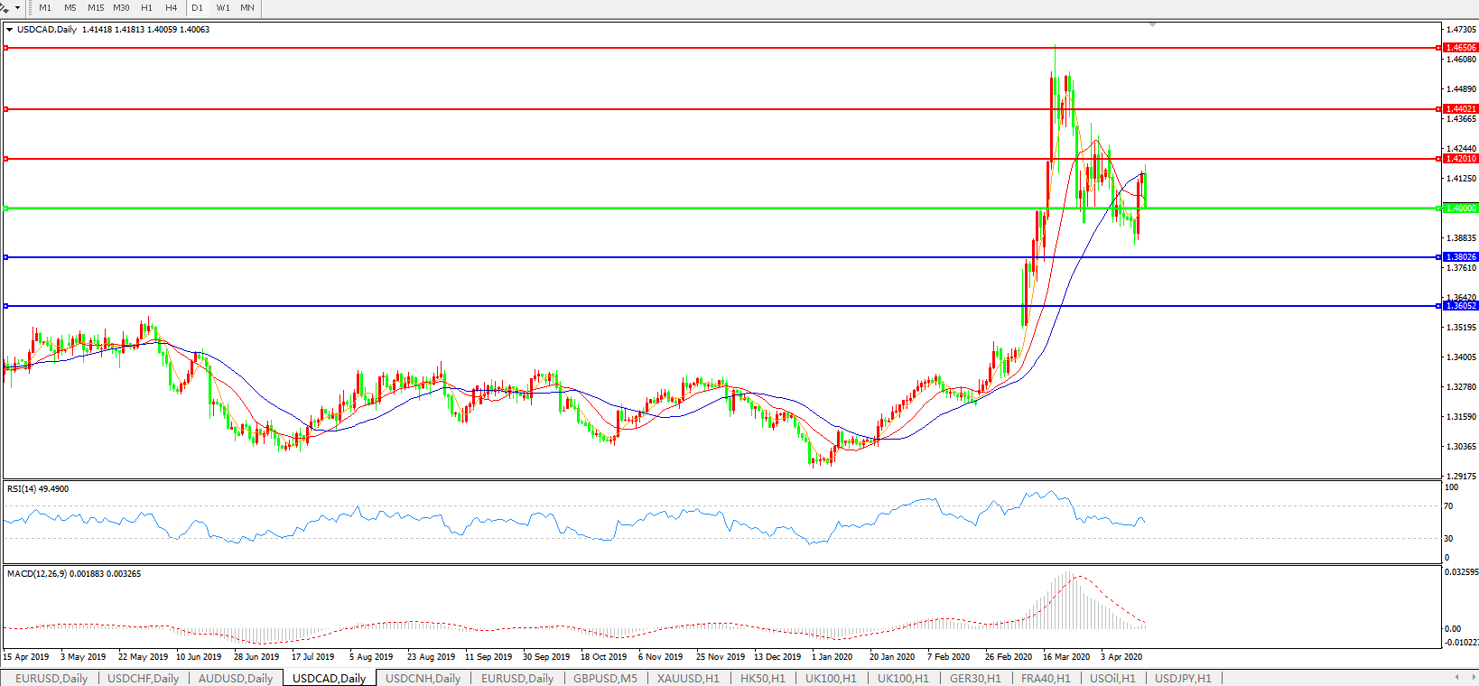 交易策略: 在1.4000之上,看涨,目标价位为1.4200、1.4400