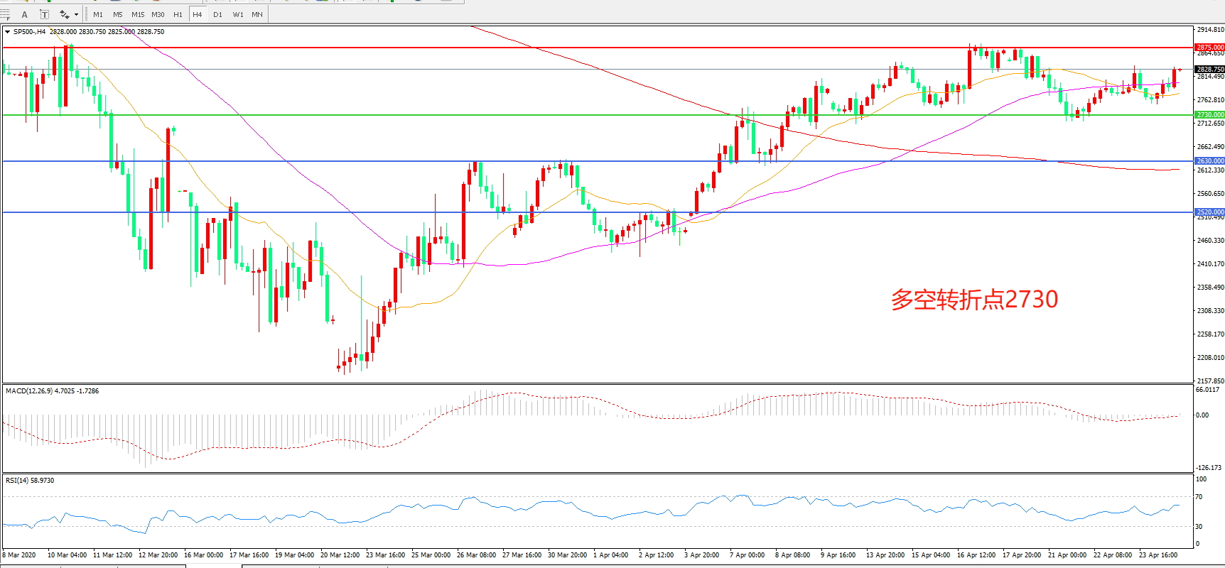 上周五(4月24日),特朗普正式签署4840亿美元援助法案,这已是疫情爆发以来,国会通过的第四轮纾困措施,累计资金规模接近三万亿美元。标普500受此影响,大幅上行,收报2828.75点。