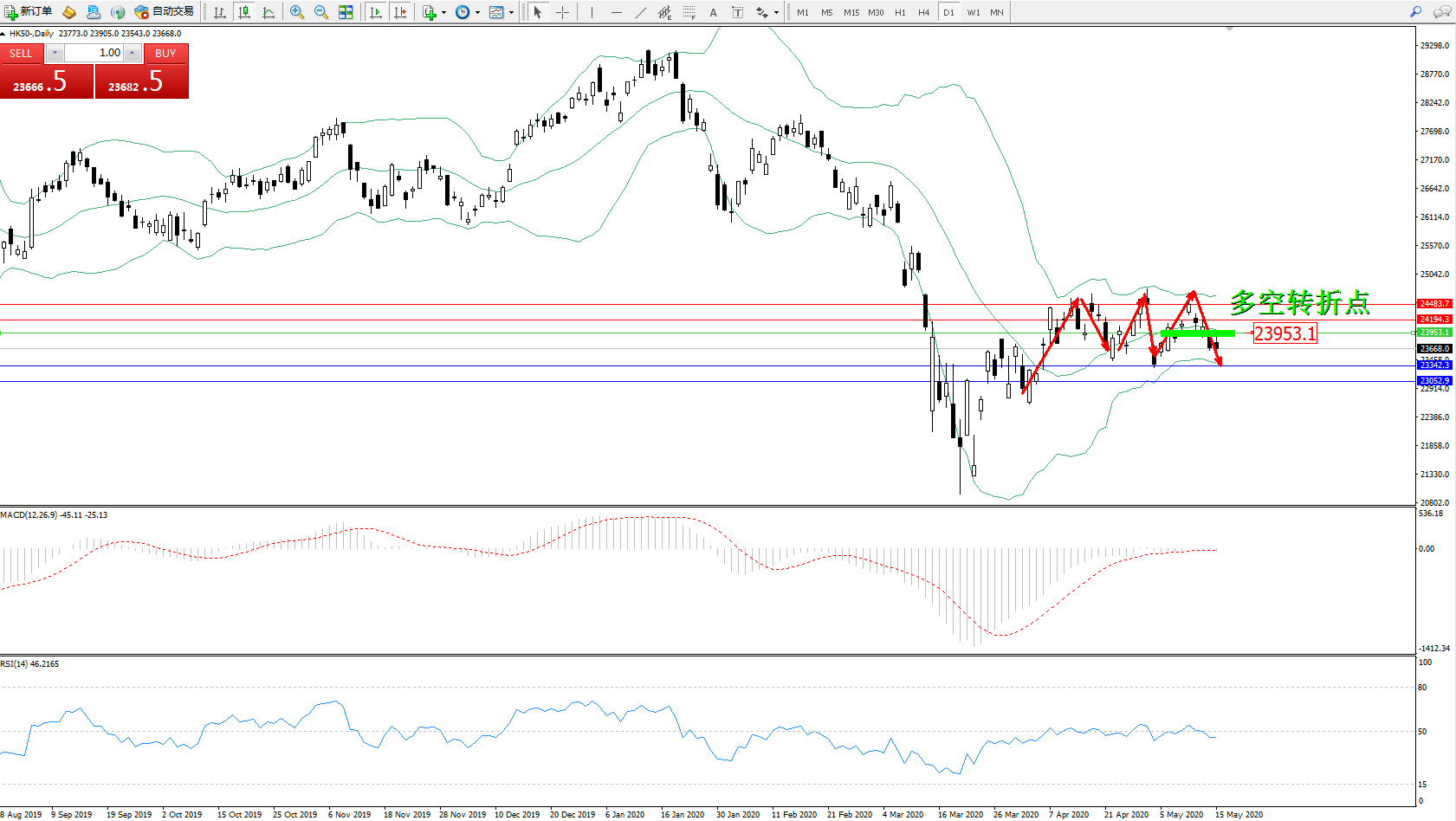 香港恒生指数5月15日(周五)收盘下跌32.27点,跌幅0.14%,报23797.47点;港股市场震荡明显,三大指数收盘微跌。软件股与生物医药股领涨,金蝶与腾讯云深度合作,大涨近9%续创新高,沛嘉医疗首日上市暴涨68%,带领生物医药B类股全线上涨;在利率不断下行的背景下,内地资金开始前往港股市场寻找优质资产。一些并未受到疫情影响或企业盈利修复能力强的消费、互联网医药龙头,成为南向资金“淘金”的重点目标。从沪深港通南北资金流向看,南向资金净流入30.58亿元,其中沪港通净流入13.44亿元,当日资金余额为406.56亿元,深港通净流入17.14亿元,当日资金余额为402.86亿元。