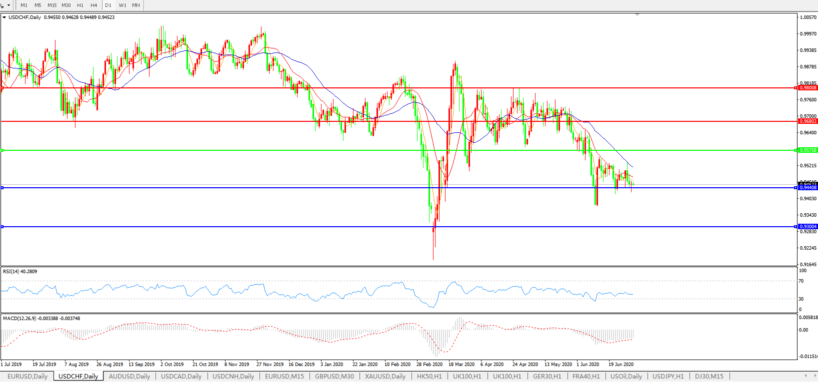 交易策略:0.9575下方看跌,目标0.9440、0.9300
