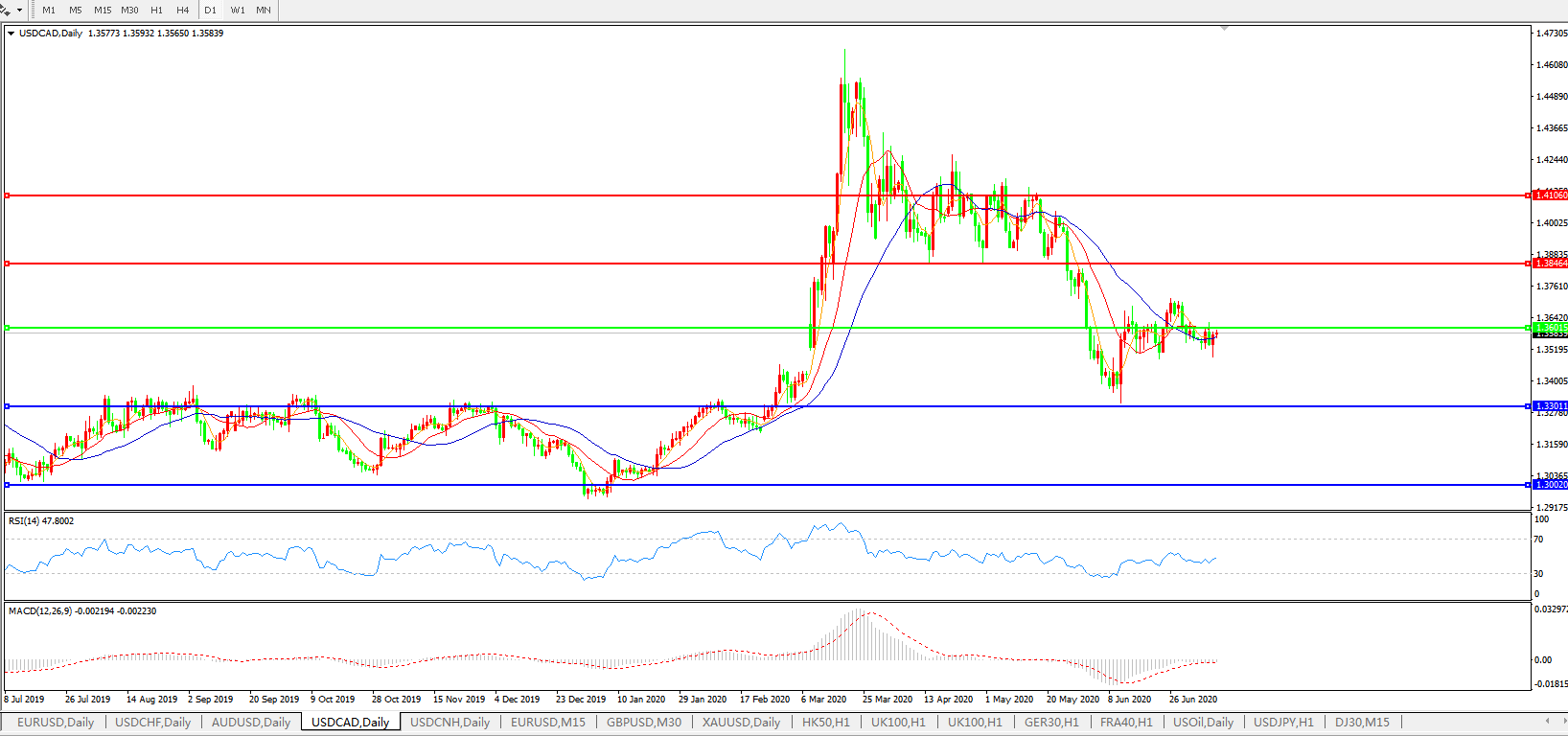 交易策略:在1.3600之下,看跌,目标价位为1.3300、1.3000