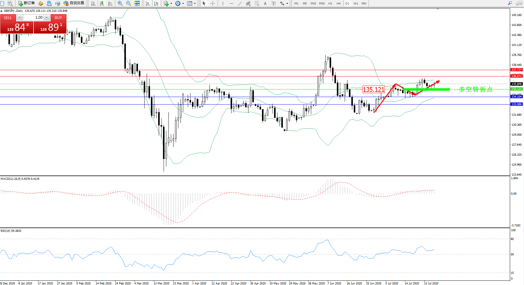 英镑兑日圆处于135.866附近维持弱势整理中,美元指数涨幅收窄,英国国家经济社会研究院预计2020年英国经济将萎缩10%,英国的失业率将在2020年晚些时候达到10%。但在英国,对政府的疫情应对表示满意的受访民众约占三分之一,较一个月前下滑3个百分点。鉴于英国脱欧贸易谈判依然存在不确定,以及英国央行实施负利率的可能性,欧盟方面此前表示,需要在10月达成协议,以便有时间在年底前通过。英国和欧盟双方都在上周表示,谈判可能陷入停滞。