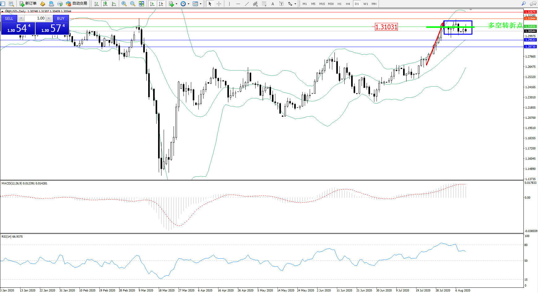 备选策略:1.31031上方看涨,目标1.31944、1.32674