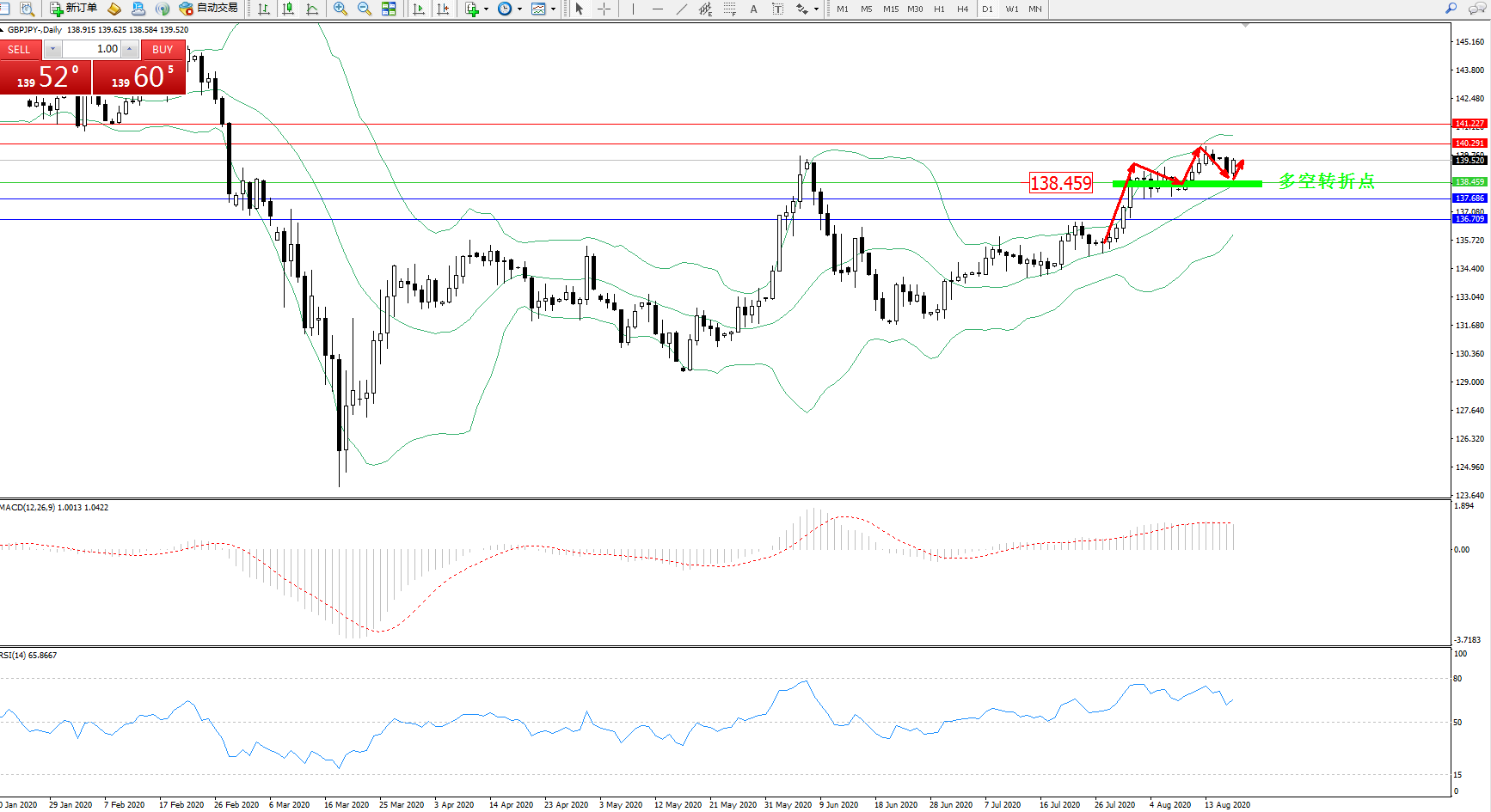 技术点评:多头动力延续布林带指标中上轨区间弱势震荡上扬中,多头动力处于循序渐进上扬走势,处于前期高位附近后开始震荡回撤,即将抵达布林带指标中轨附近节点,多头动力再度发力拉升向上移动,关注中轨附近转折点,布林带指标通道呈上行走势持续,有持续拉升走势,前期高位破位后开始整理调整,MACD指标处于0轴线上方多头区域维持整理平移中,RSI指标处于多头区域维持整理走势后开始回调;