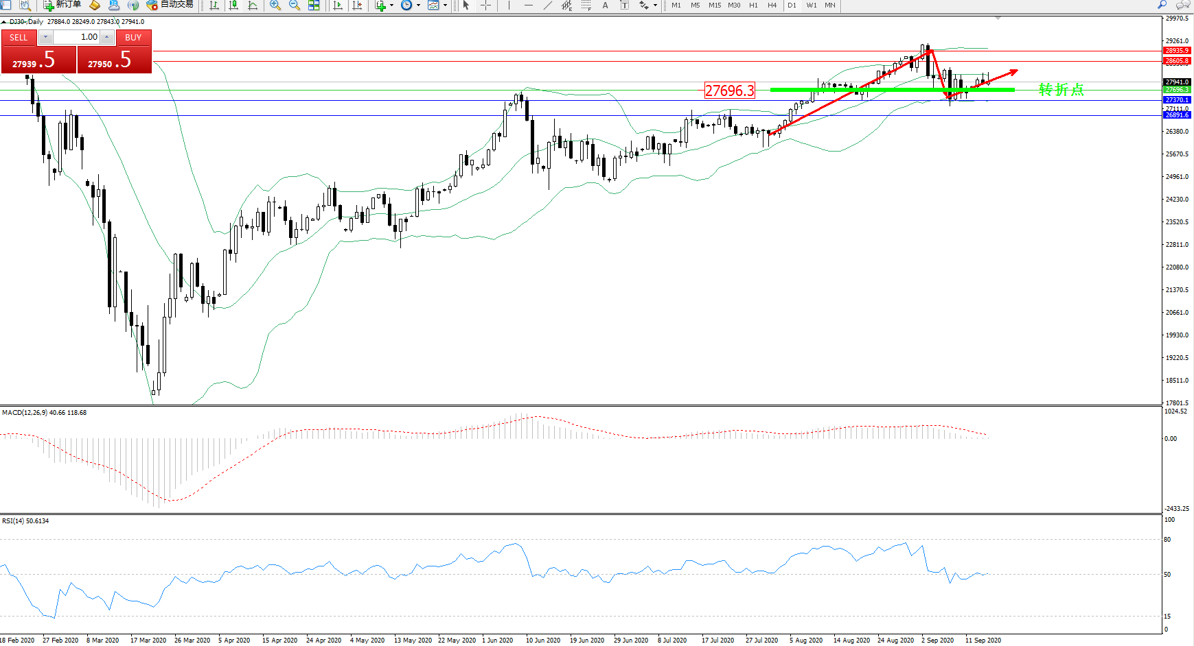 道琼斯指数DJ30—— 日K线图显示: