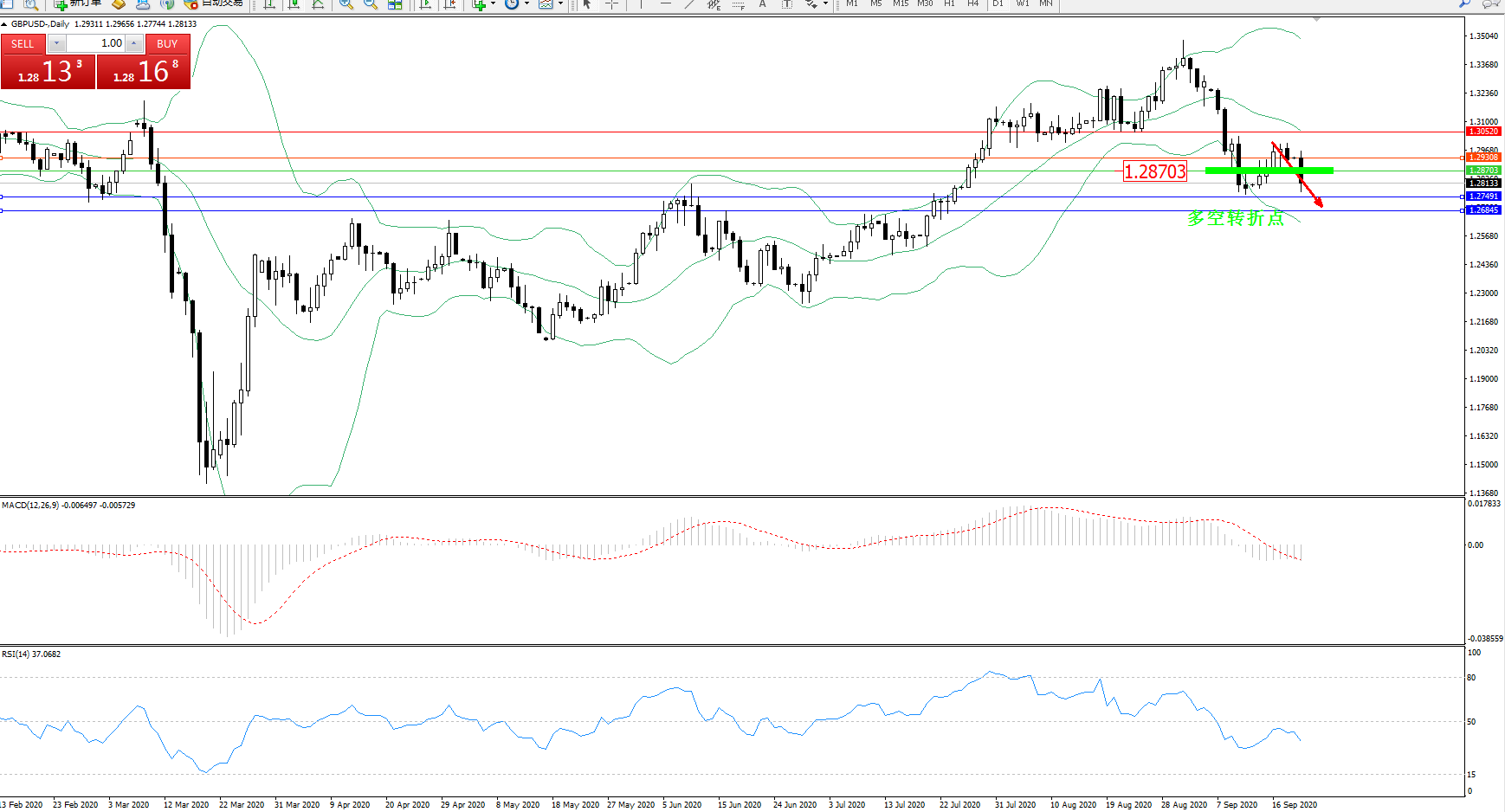 交易策略:1.28703下方看跌,目标1.27491、1.26845