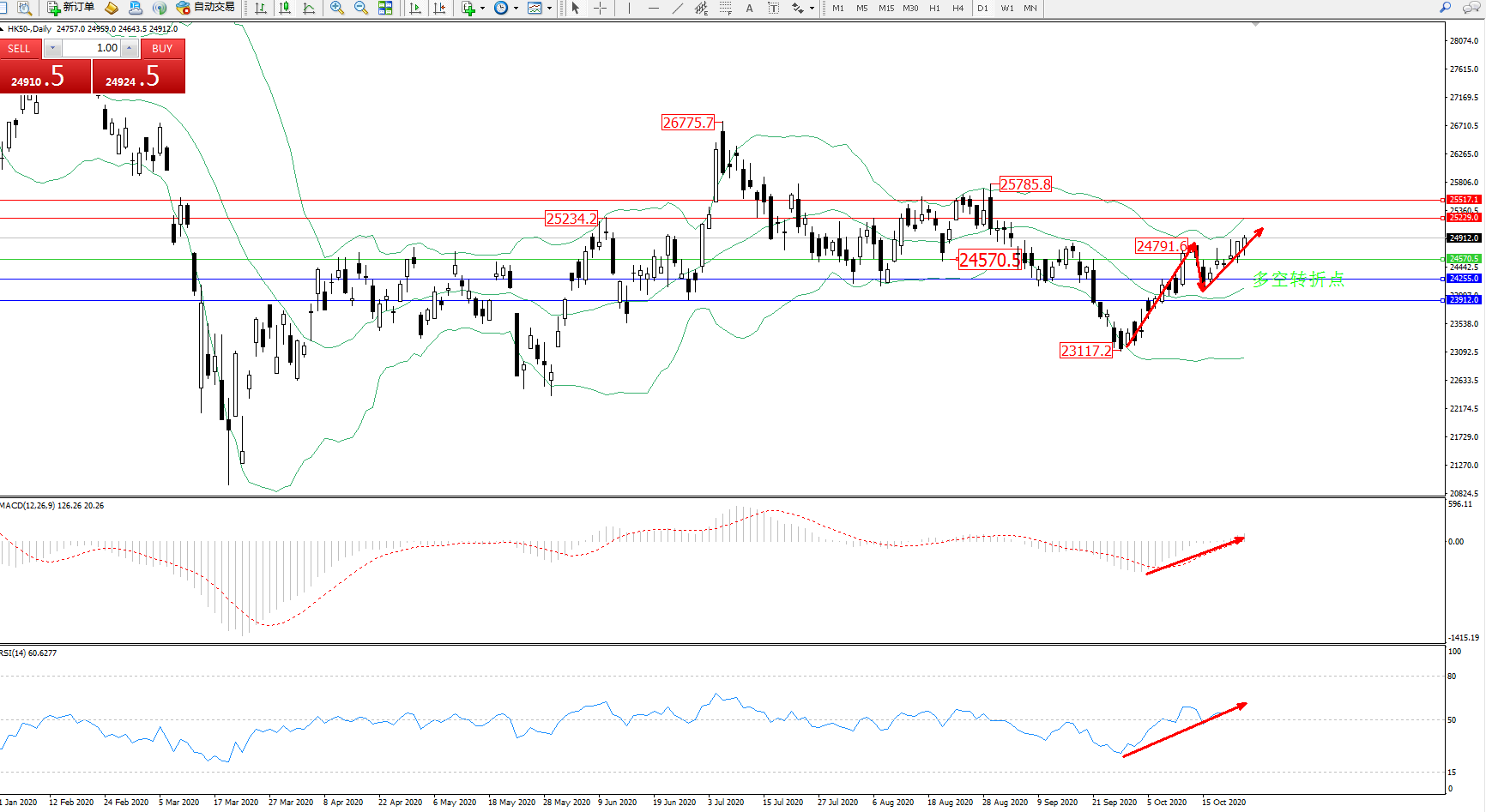 香港恒指因重阳节翌日,休市一天。周K线强势四连阳。沪深三大指数收盘涨跌不一,沪指全天收跌0.82%报3251.12点,市场情绪表现一般,成交量萎靡。美股三大指数大幅收跌,因市场担心新冠疫情反弹将削弱全球经济,大选前国会批准新刺激法案的希望渺茫也令股市承压。随着标普500指数下跌,市场变得紧张起来。危险显然在于,如果病例数继续像之前那样上升,北美不得不开始实施进一步限制措施,甚至宵禁,甚至封锁,尽管政府一再不想这样做。投资者仍然在密切关注大选前通过刺激法案的可能性。投资者担忧美国新冠疫情以及刺激谈判前景不确定性而寻求避险。