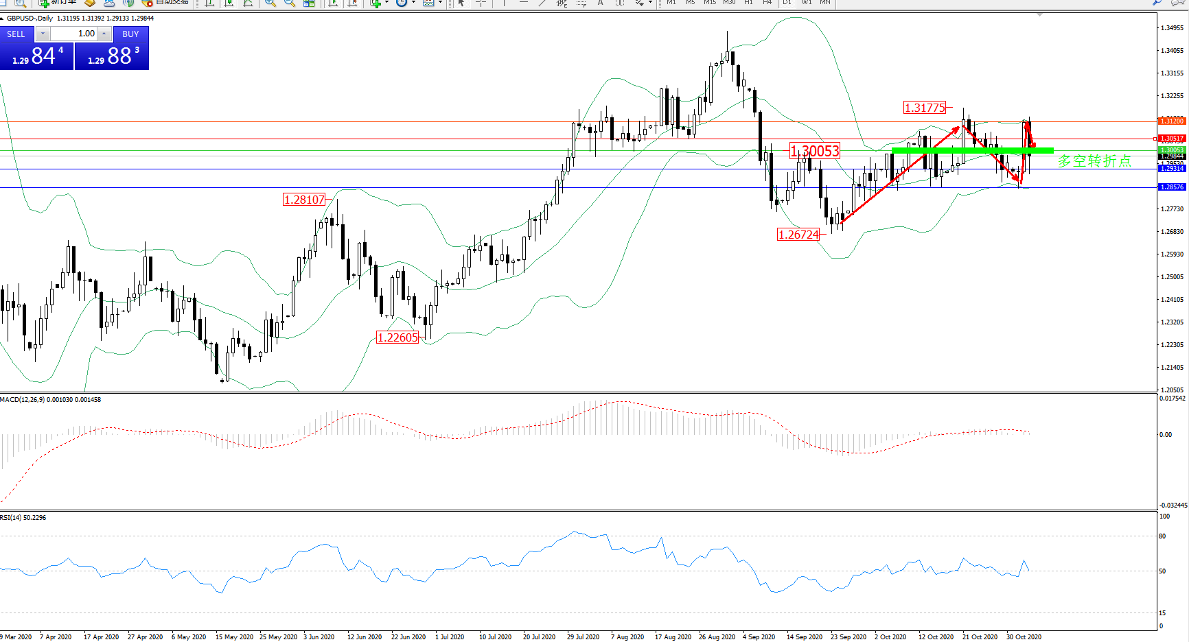 备选策略:1.30053上方看涨,目标1.30517、1.31200