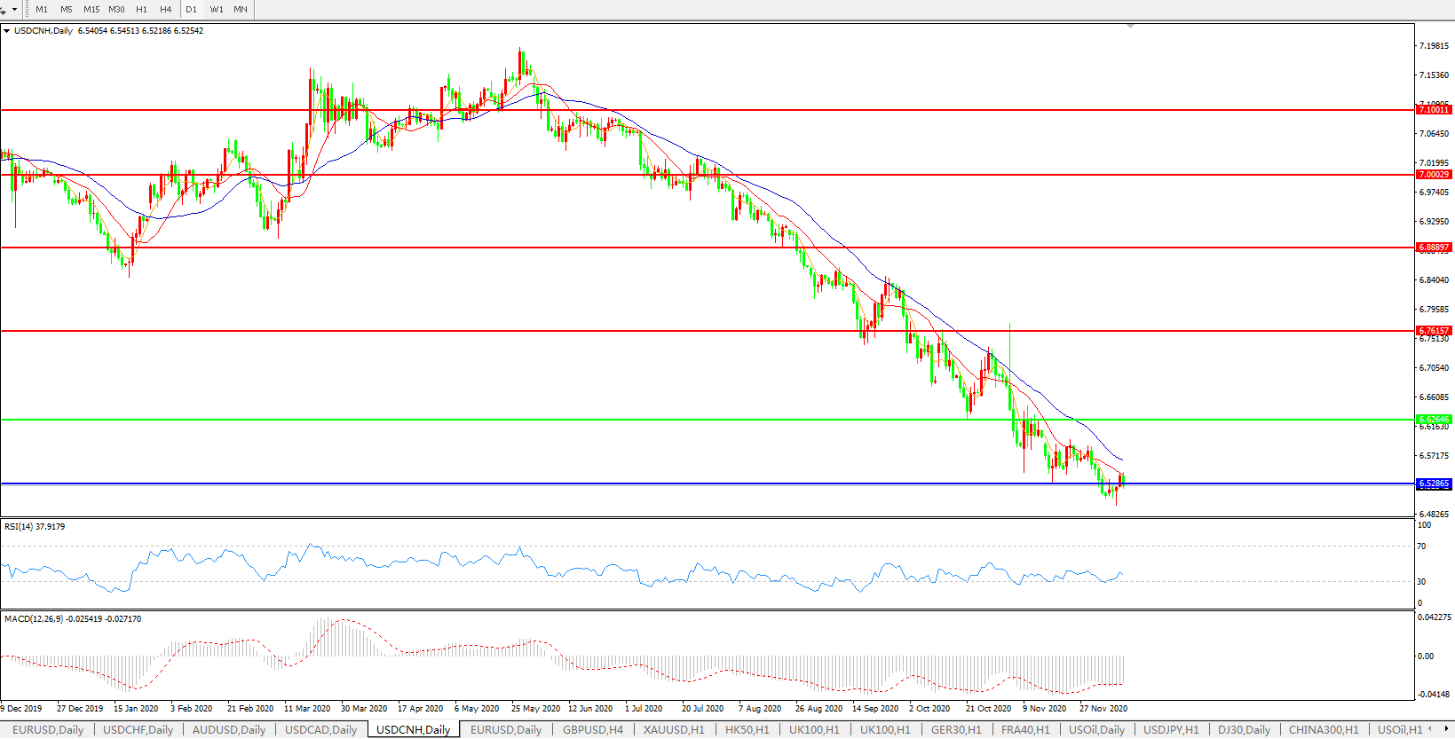 美元兑人民币USDCNH    日线图: