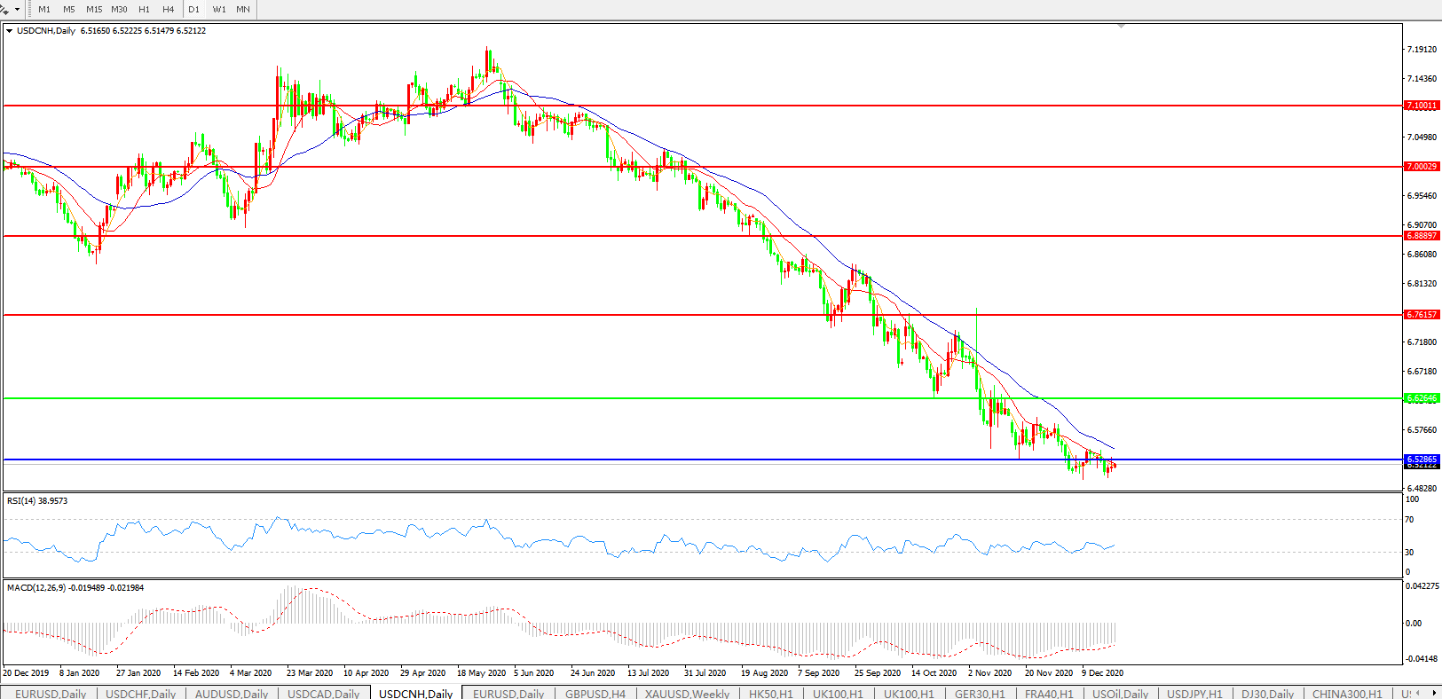 美元兑人民币USDCNH 日线图: