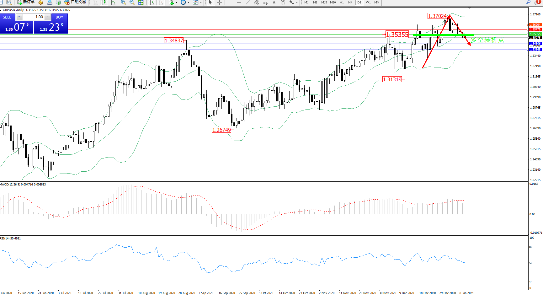 备选策略:1.35355上方看涨,目标1.35779、1.36204