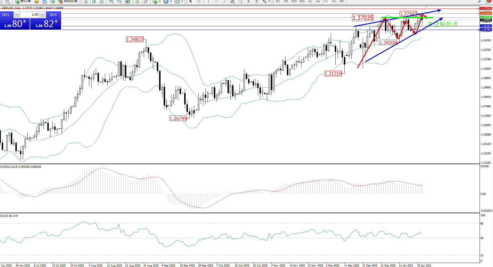 备选策略:1.37035上方看涨,目标1.37443、1.37938