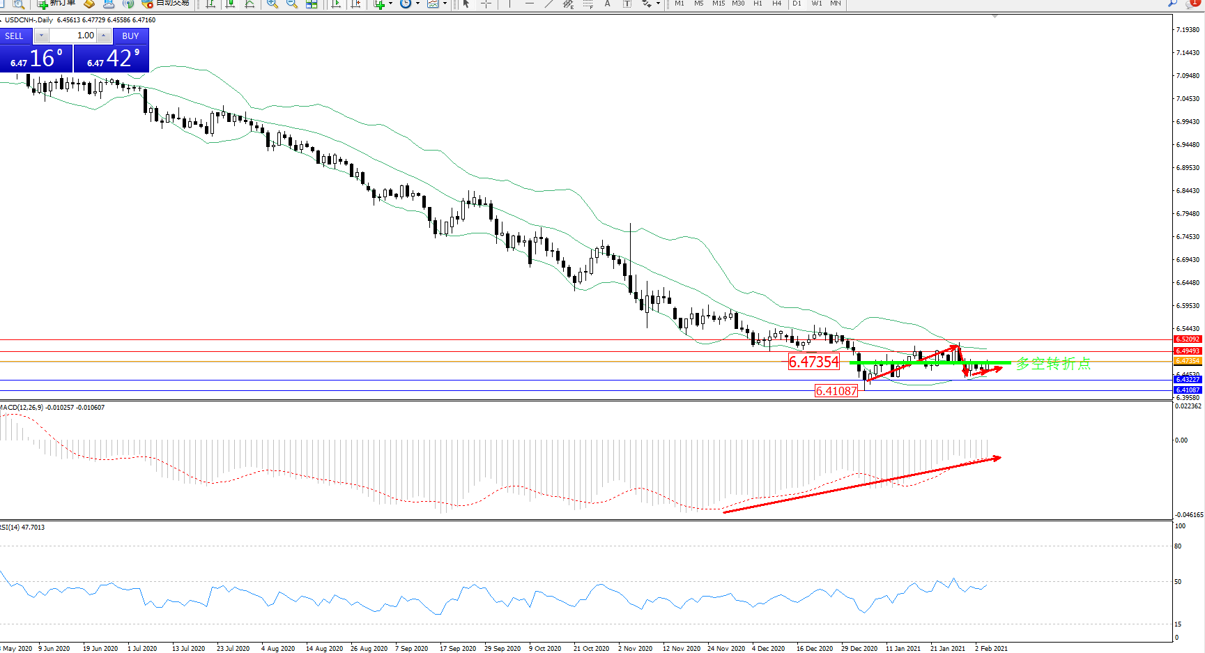 交易策略:6.47354下方看跌,目标6.43227、6.41087