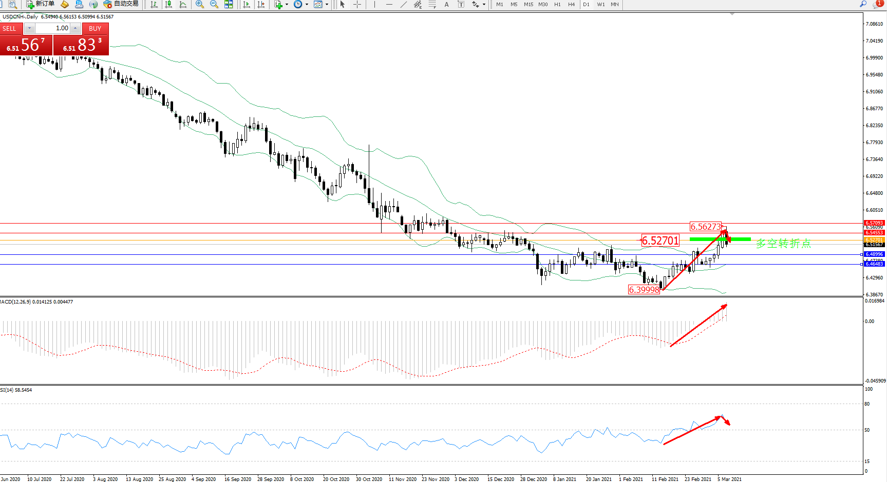 备选策略:6.52701上方看涨,目标6.54553、6.57093