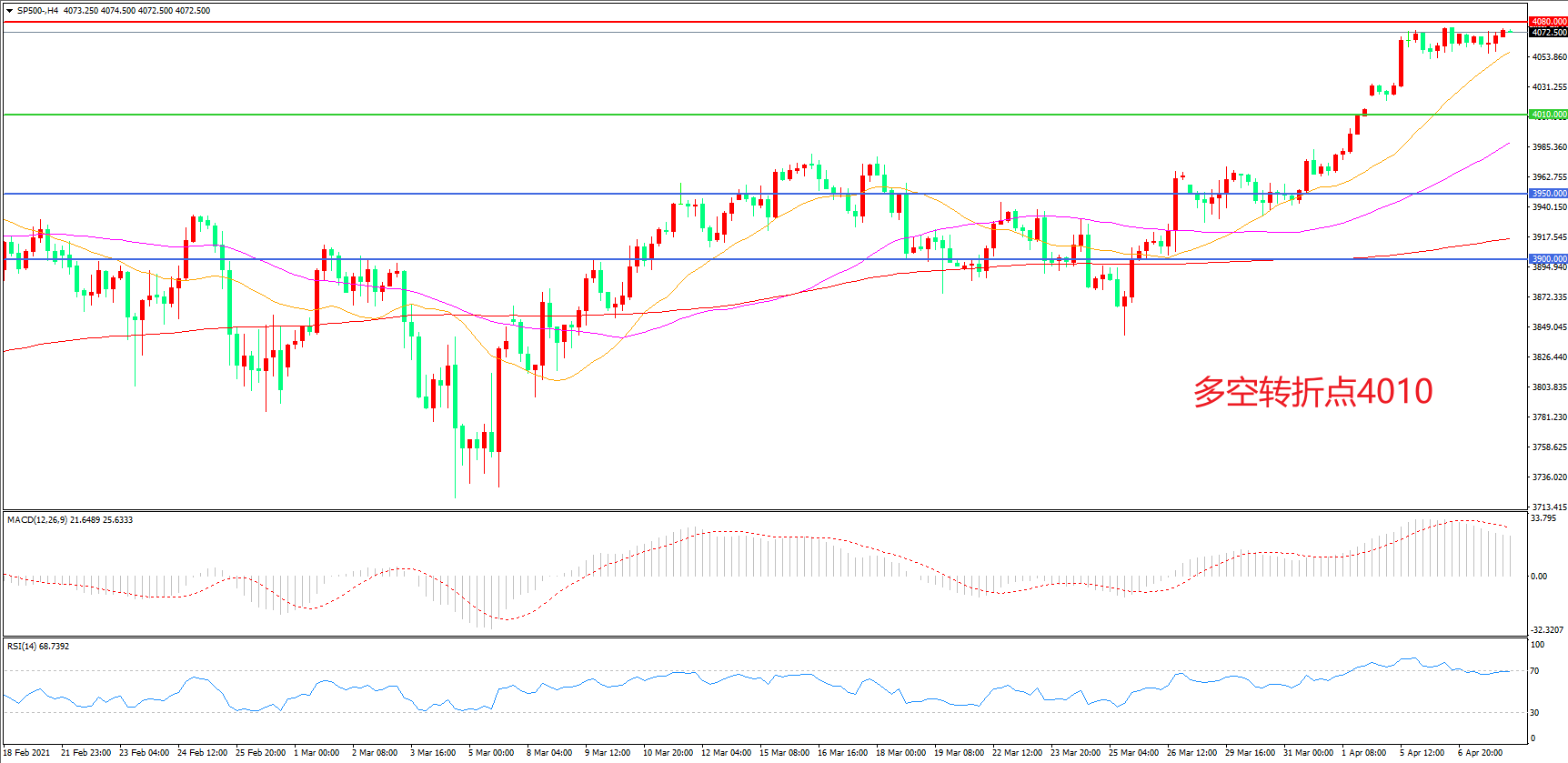 周三(4月7日),拜登政府公布试图未来15年增加收入2.5万亿美元的企业税方案,美联储官员达拉斯联储主席卡普兰发表撤除宽松的鹰派言论,美股在美联储3月会议纪要公布前承受双重打击,但随后公布联储会议纪要显示,美联储认为需要一段时间才能满足缩减QE要求,并未暗示很快会迅速调整QE购债,标普500企稳回升后收报4074.25点。