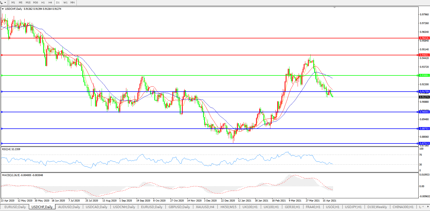 交易策略:0.9300下方看跌,目标0.9170、0.9000