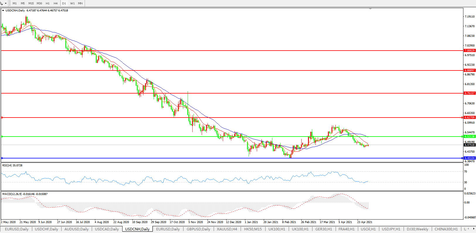 美元兑人民币USDCNH    日线图: