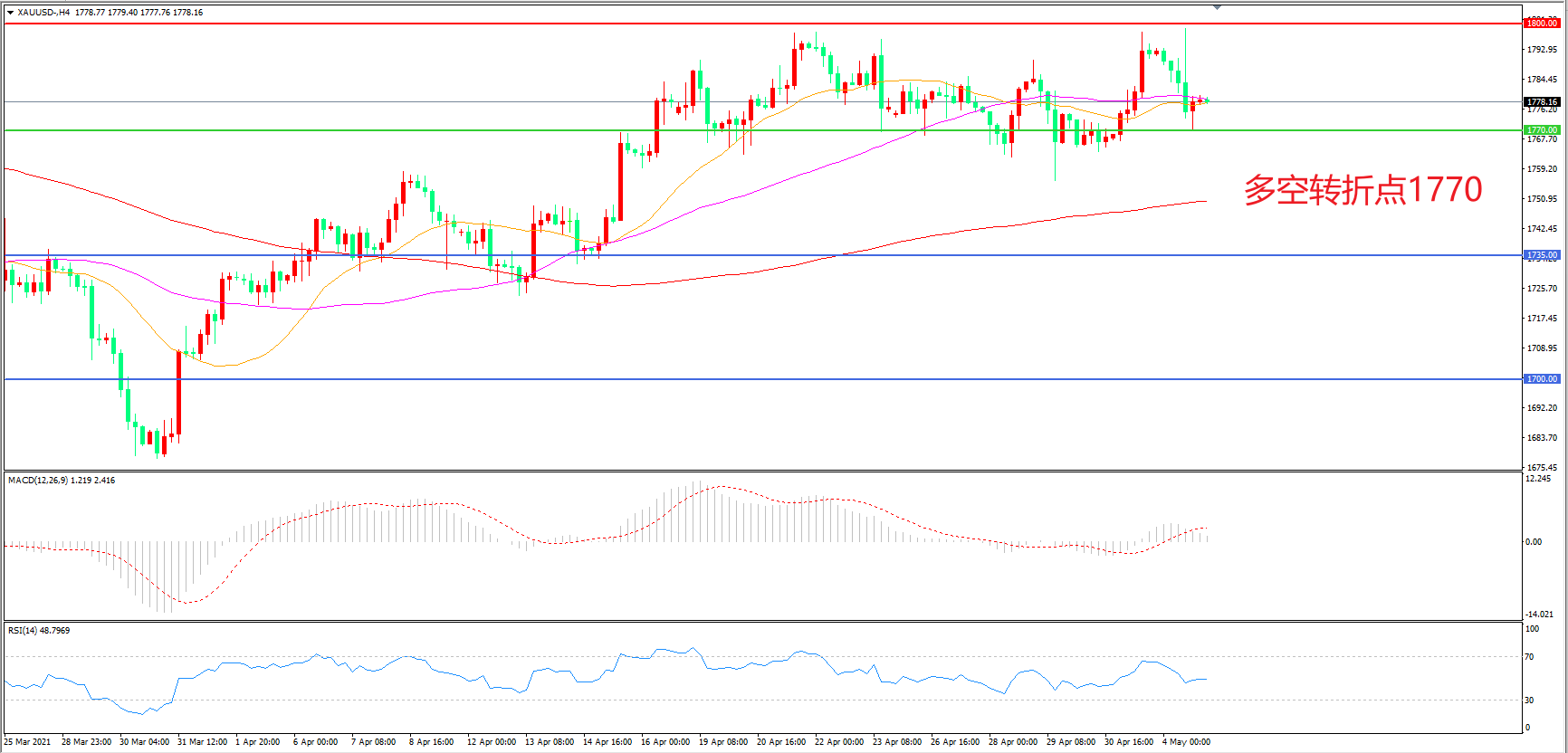 周二(5月4日),美国财长耶伦在公开讲话中表示,为了防止经济过热,美联储可能不得不提高利率,耶伦在随后的发言中强调,自己没有预测或建议加息,但其鹰派言论一出,市场还是应声暴动,现货黄金短线急挫13美元,随后震荡反弹,收报1778美元/盎司。此前达拉斯联储主席卡普兰曾表示现在开始讨论调整QE购买速度是适宜的,如果本周有官员再度释放与鲍威尔不一样的立场,有可能会再次引发市场动荡。