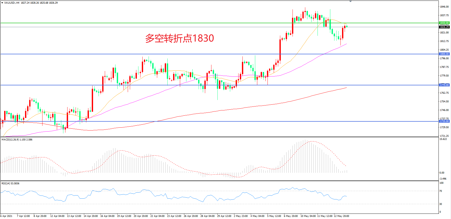 多空转折点:68.00