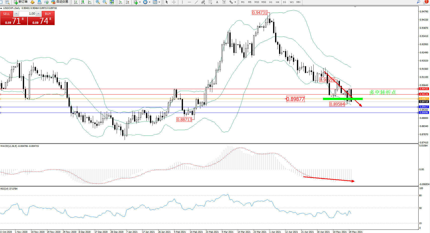 美元瑞郎USDCHF——日K线图显示:
