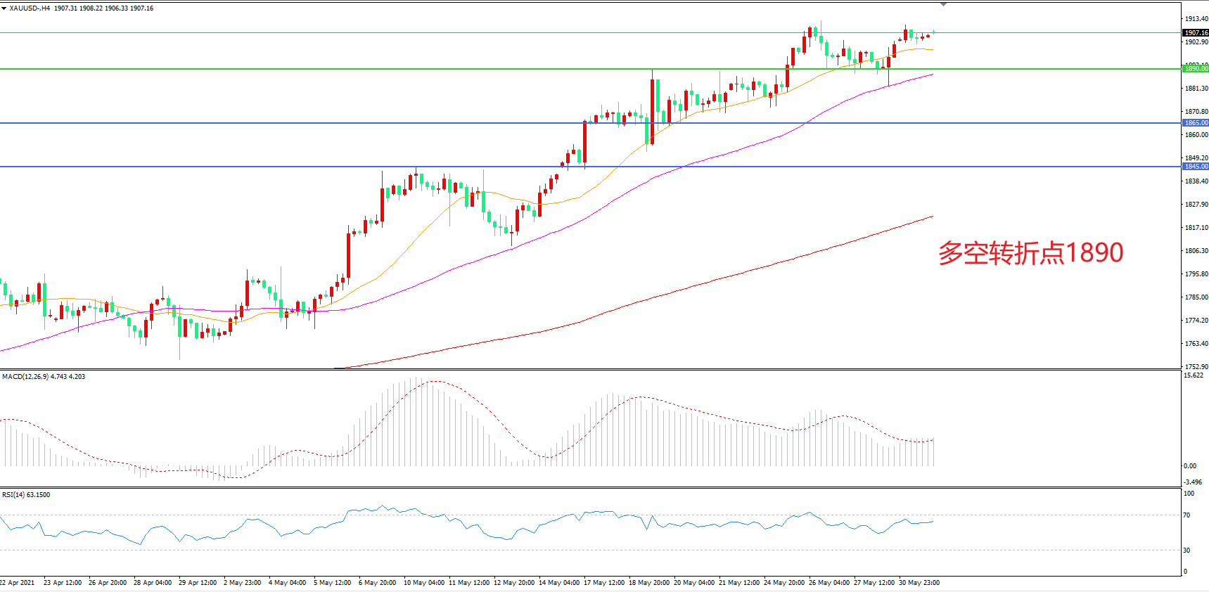 交易策略:在1890.00之上看涨,目标1910.00 1935.00