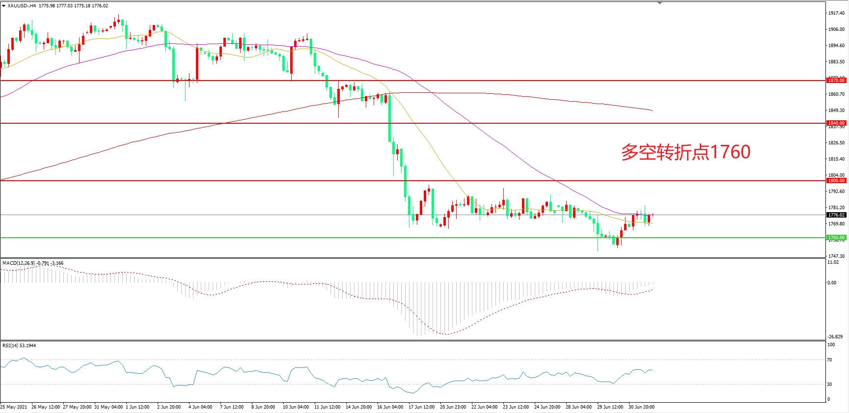 多空转折点:1760.00