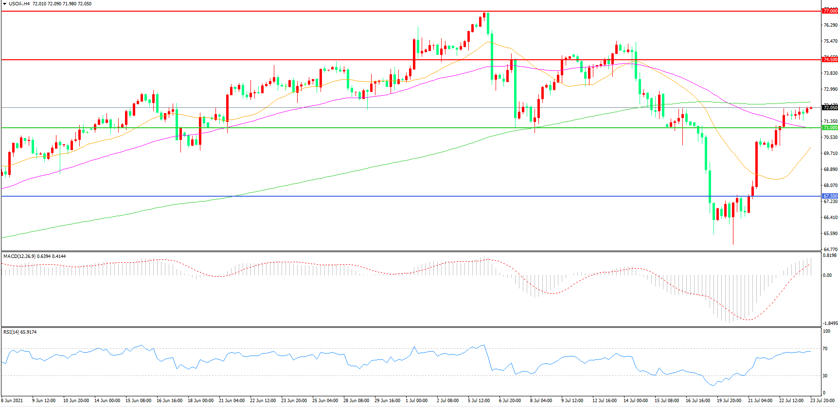 交易策略:在71.00之上看涨,目标74.50       77.00