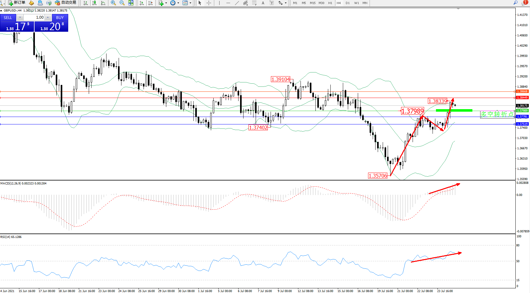 备选策略:1.37989下方看跌,目标1.37781、1.37519