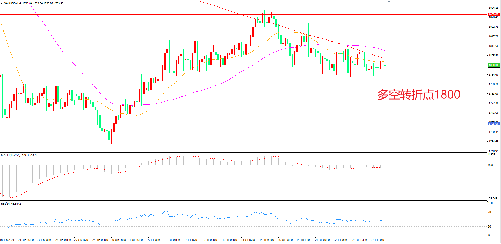 交易策略:  在1800.00之上看涨,目标1840.00        1870.00