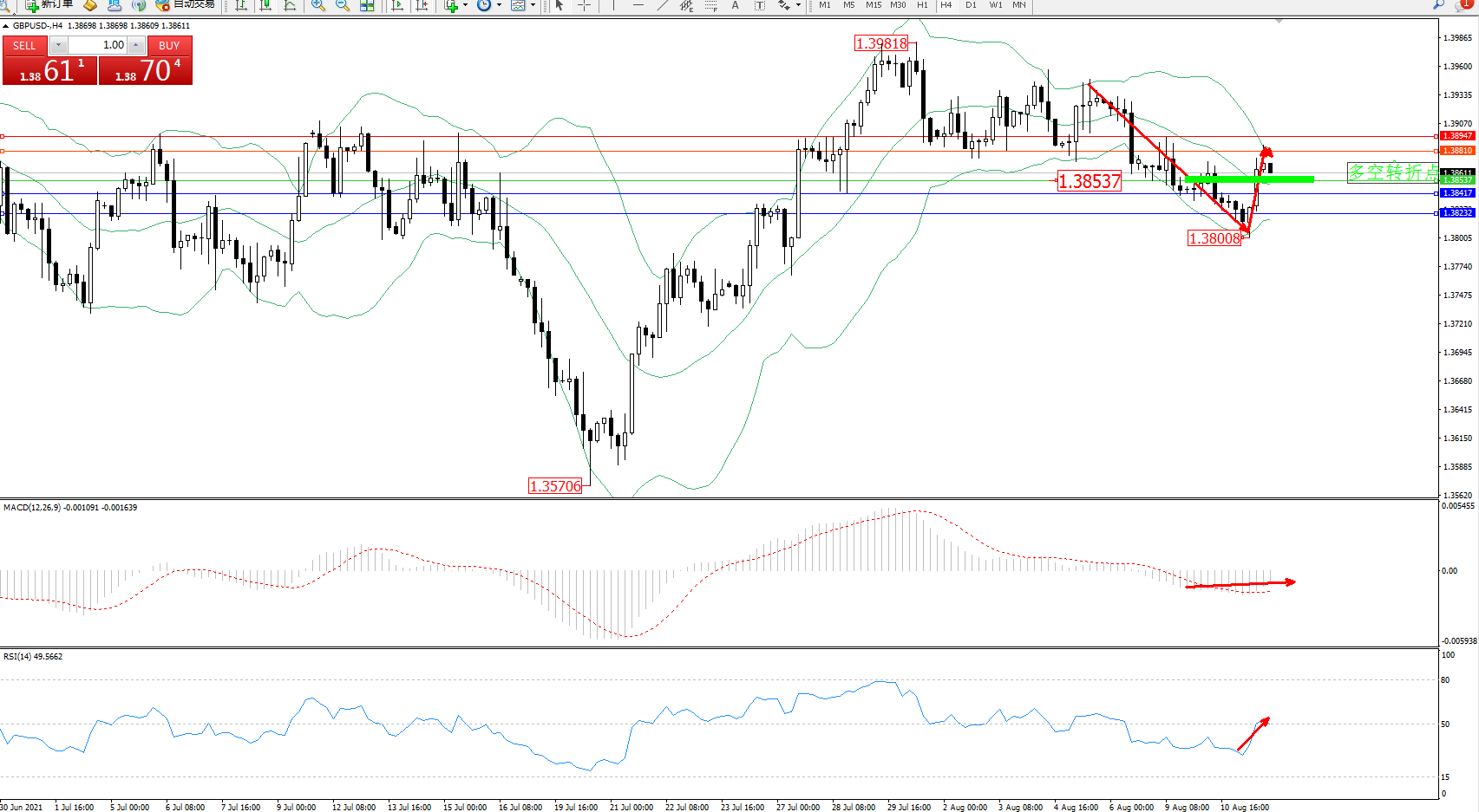 交易策略:1.38537上方看涨,目标1.38810、1.38947