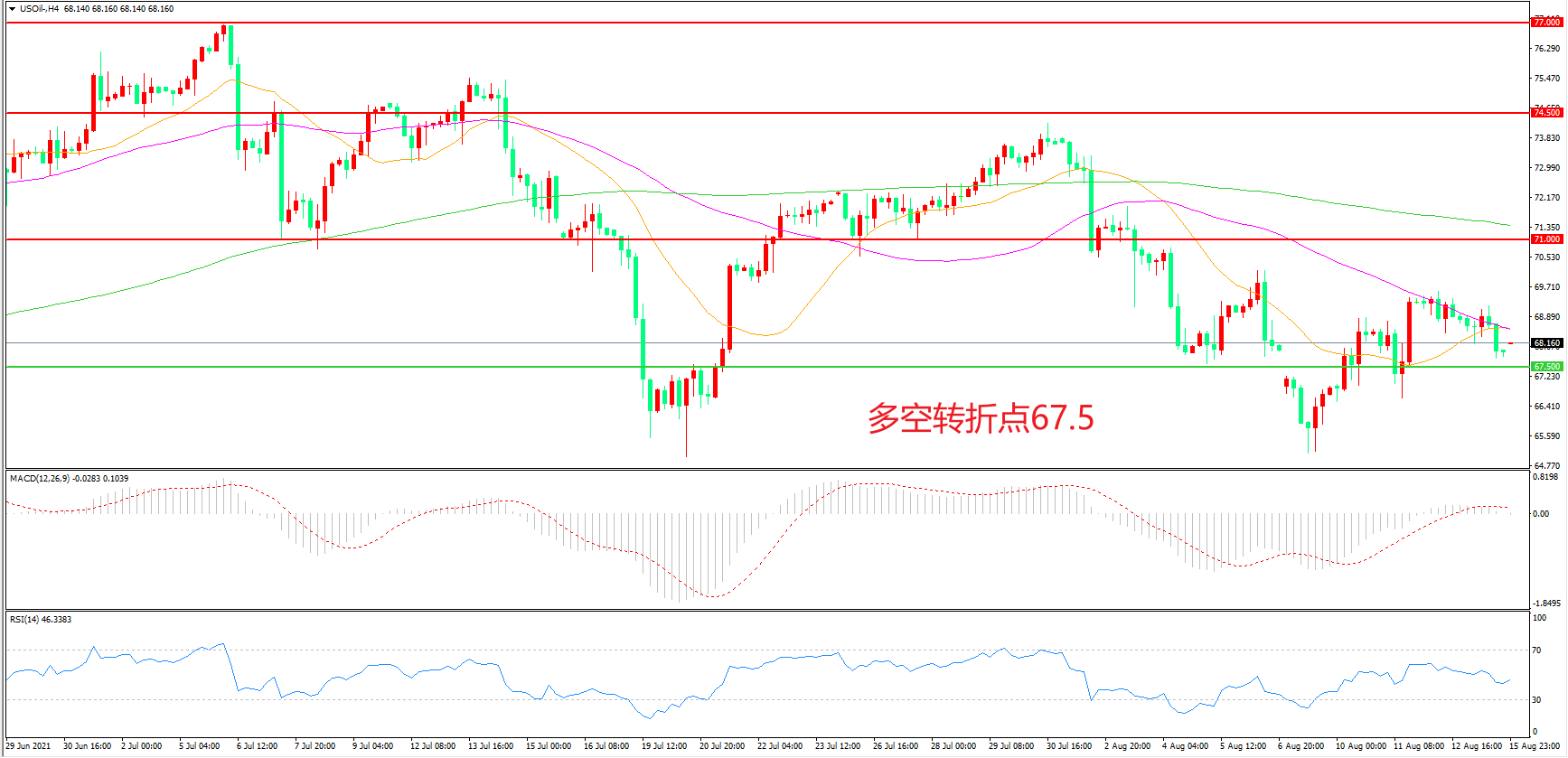 交易策略:在67.50之下看跌,目标64.00       60.00