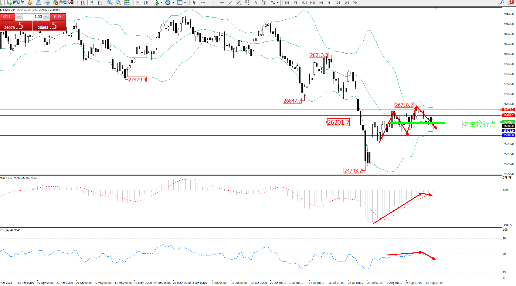 技术点评:低位多头动力震荡上移后维持在布林带指标通道中上轨区间呈M顶形态震荡回撤,即将触及下轨附近节点,布林带指标呈收口走势波幅逐渐收窄,短期或维持窄幅震荡向下移动,MACD指标处于空头区域低位震荡缓慢上移,处于0轴线下方弱势徘徊中,RSI指标处于50均衡线下方弱势整理整理下行;