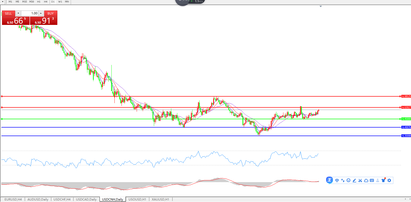 交易策略:在6.4500之上,看涨,目标价位为6.5200,然后为6.5850。