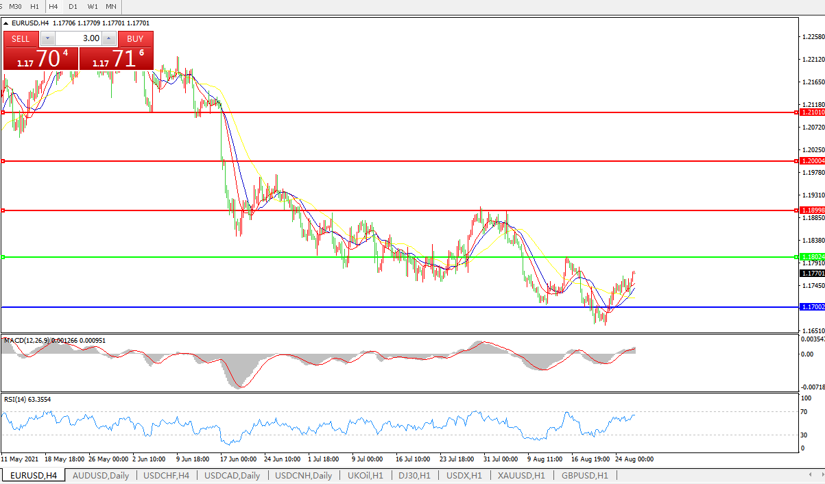 交易策略:1.1800下方看跌,目标1.1700、1.1600