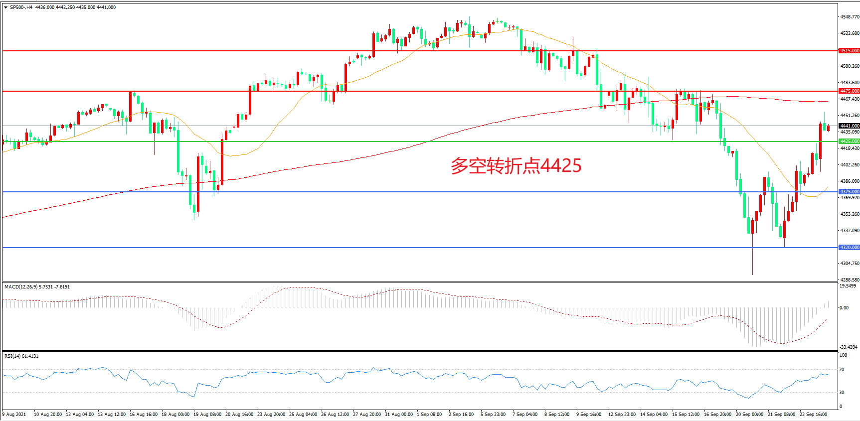 多空转折点:4425.00