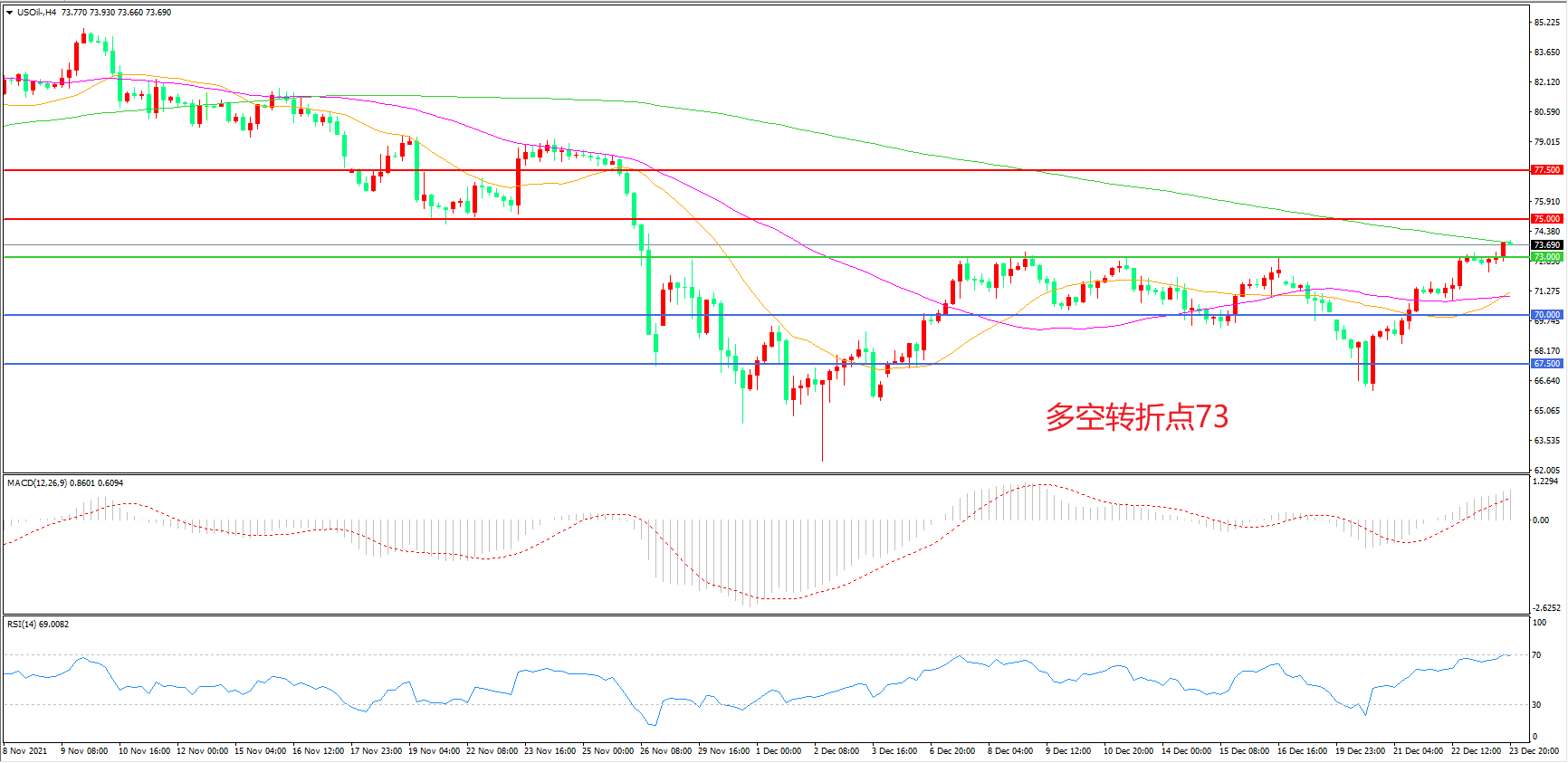 周四(12月23日),因EIA原油库存降幅大于预期,且市场也消化了奥密克戎对对需求的影响,美国WTI原油延续强势表现,收报73.69美元/桶。目前随着圣诞节的临近,交易员们也开始放假,具体会如何表现,可能要等到下周才能做出抉择,近期美国的炼油厂发生了爆炸事故,预计影响炼油需求50多万桶,这一事件也有可能成为行情发酵的导火索。