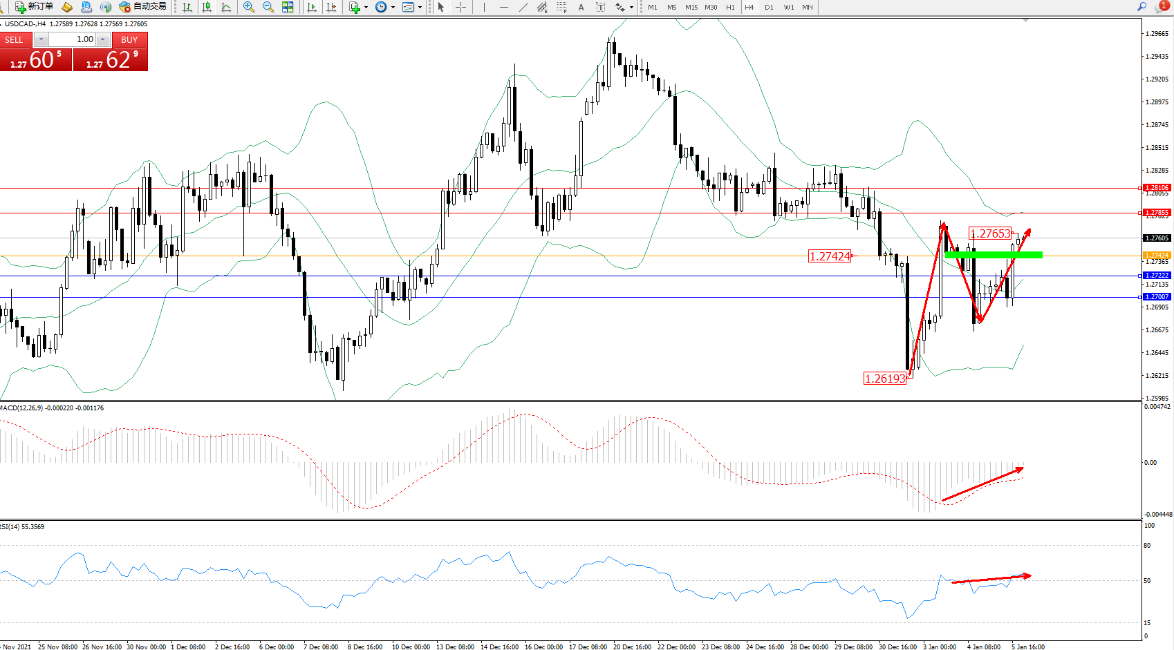 美元加元USDCAD——4小时K线图显示: