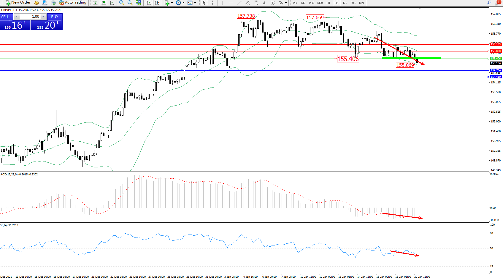 技术点评:高位空头动力延续布林带指标通道中下轨区间持续震荡下行,低位抵达155.069附近节点后有继续向下移动态势,布林带指标呈向下移动趋势走势持续中,MACD指标处于0轴线下方维持弱势徘徊中,RSI指标处于50均衡线下侧不断整理徘徊中;
