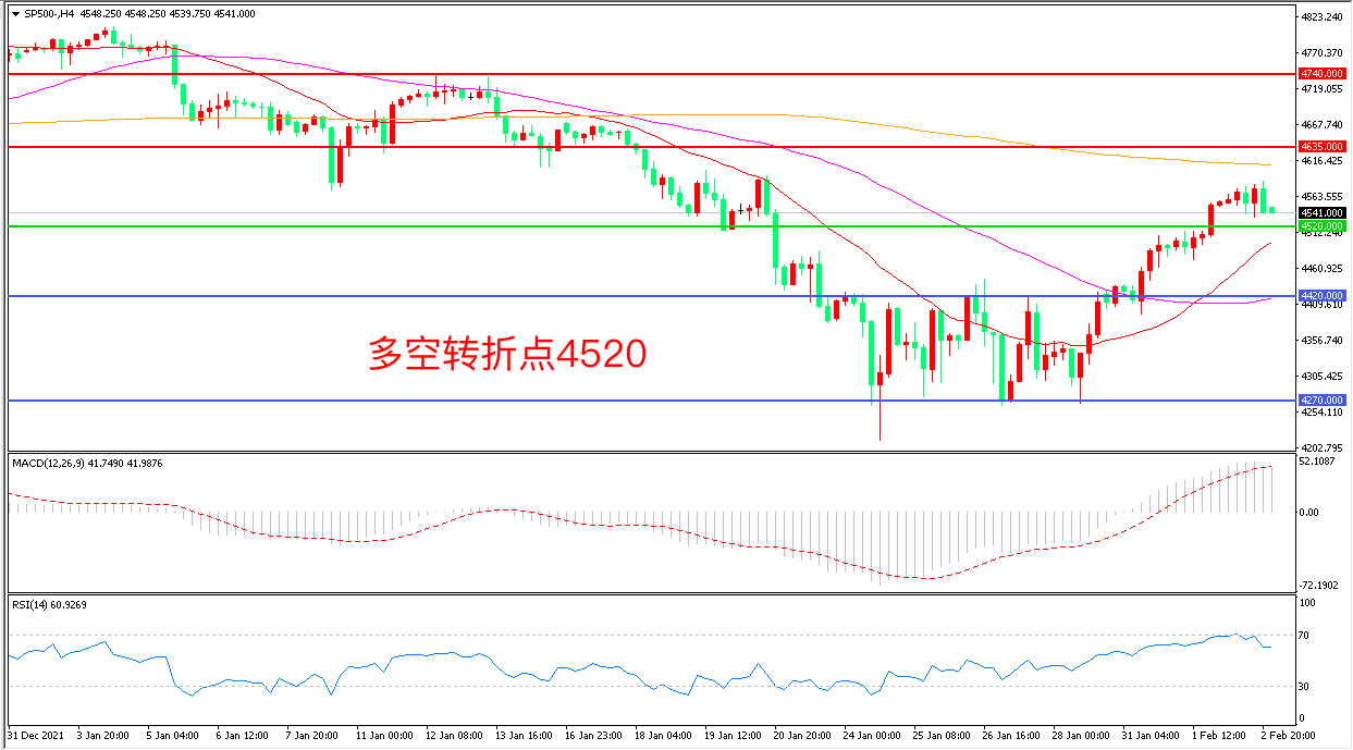 交易策略:在4520.00之上看涨,目标4635.00         4740.00