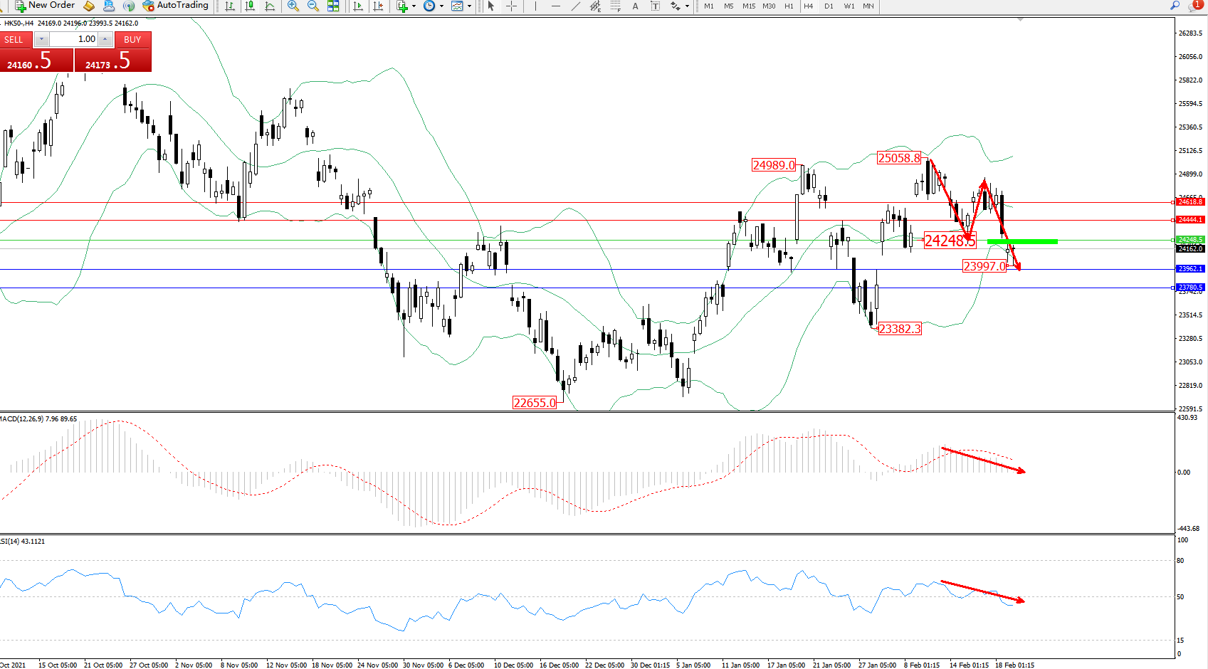 香港恒生指数2月21日(周一)收盘下跌157.64点,跌幅0.65%,报24170.07点;港股再度下挫,恒生科技指数跌2.78%。今日南下资金净流入21.78亿港元,大市成交额为1437亿港元。科技股连遭暴击,传监管层今日和游戏产业进行了监管思路指导,腾讯、网易等游戏科技股大跌,权重科技股阿里巴巴、美团、小米等齐挫,据央视,香港特区政府食物及卫生局副秘书长蔡杰铭表示,“疫苗通行证”计划将从2月24日起实施,市民需要出示疫苗接种记录后才可进入商场、街市等场所。第一阶段,即4月29日前,12岁以上者需要打一针疫苗才可入内。