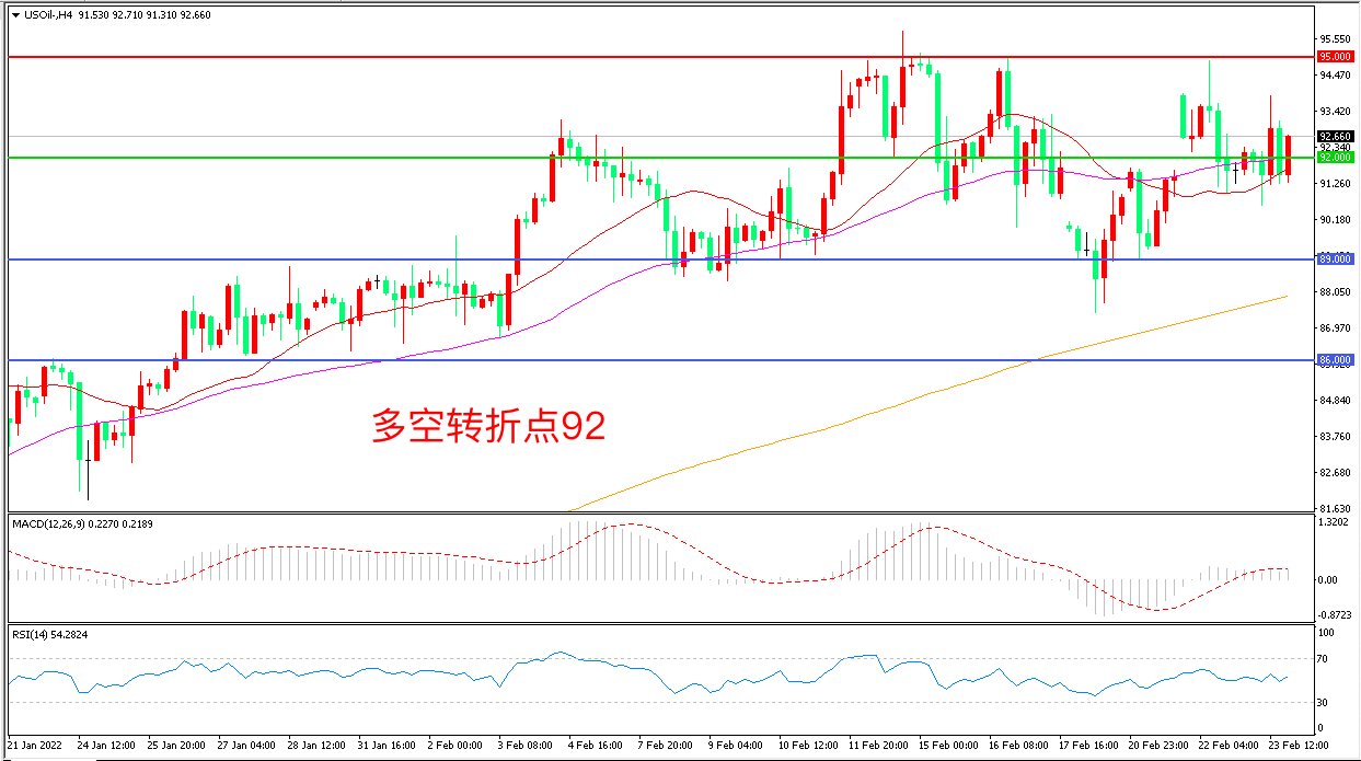 交易策略:在92.00之上看涨,目标95.00 98.00