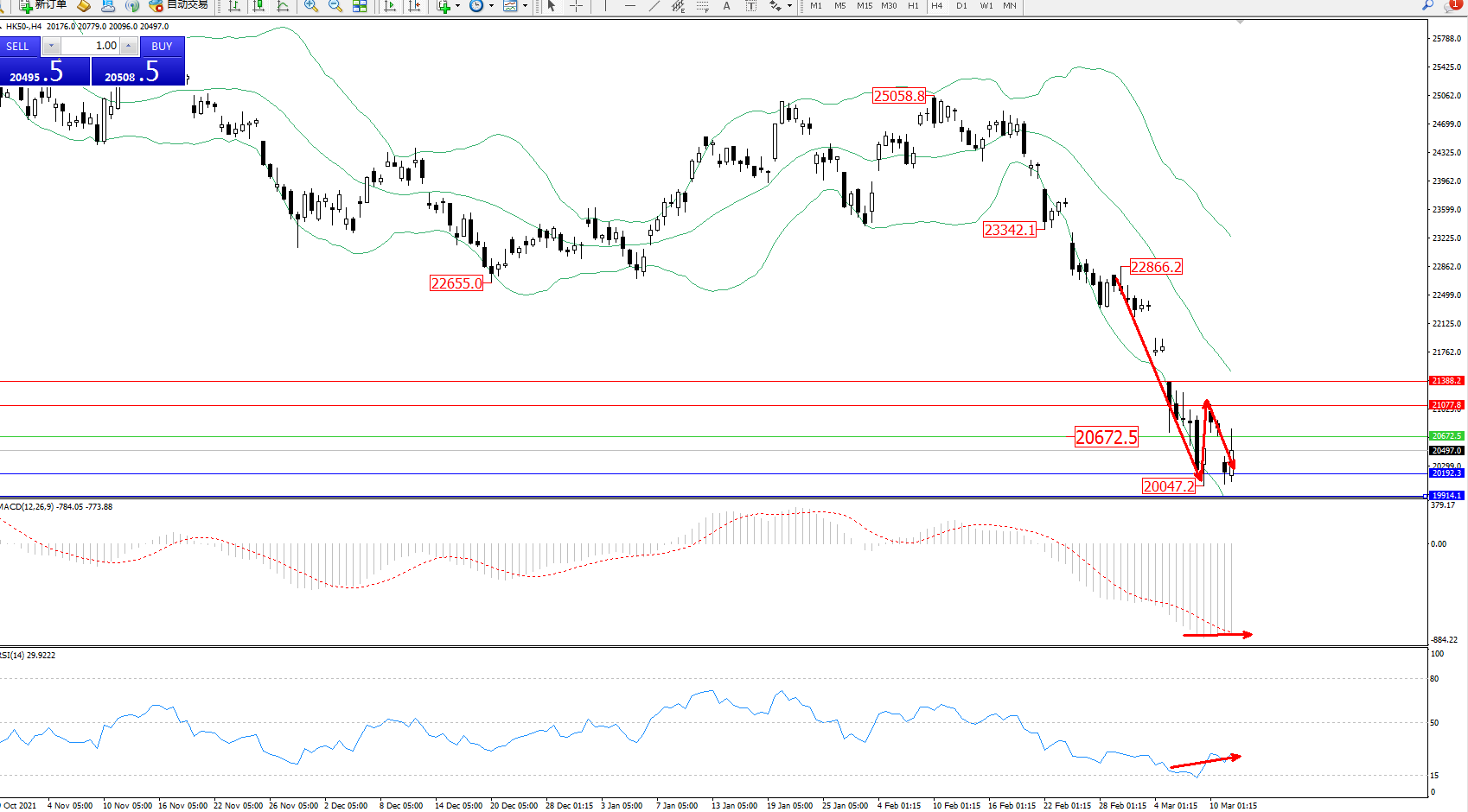 香港恒生指数3月11日(周五)收盘下跌336.47点,跌幅1.61%,报20553.79点;恒指收跌1.61%盘中一度重挫800点,2万点关口支撑明显;因回港中概股大跌,恒生科指指数大幅收跌4.24%,盘中一度暴跌近9%创新低。大型科技股京东绩后跌11%,快手、美团跌超6%,阿里巴巴跌超5%,腾讯跌超4%;药品股大跌,石四药集团跌超10%,和黄医药、百济神州均大跌;在考虑市场意见及准备情况后,香港交易所今天宣布,其衍生产品假期交易服务将于2022年5月9日佛诞公众假期开始实施,有关安排待监管机构批准后作实。衍生产品假期交易让国际投资者可以在香港公众假期时,继续在香港交易所买卖证券在其他标的市场的期货及期权产品,以进行风险管理。香港交易所计划分批将其旗下的非港元计价期货及期权纳入假期交易,而所有香港交易所MSCI期货及期权合约将是首批纳入的产品。