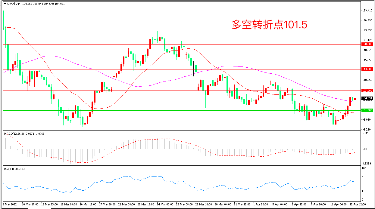 周二(4月12日),OPEC公布原油月报该组织仍认为几乎没有必要改变其目前的增产政策,这是欧佩克将继续对不断升级的能源危机持观望态度的最新迹象,布伦特原油闻讯大涨,收报104.99美元/桶。与此同时,EIA也下调了下调2022年和2023年原油产量增长的预测,供需偏紧的根据将对市场持续造成影响。