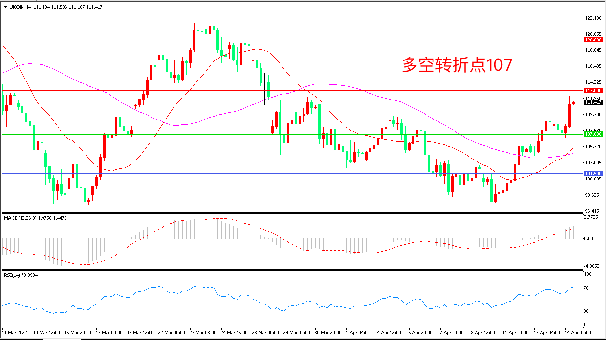 周四(4月14日),有报道称,欧盟正朝着逐步实施俄罗斯石油禁令的方向前进,俄乌谈判局势恶化加强了原油市场断供的担忧,布伦特原油大幅拉升,收报111.41美元/桶。受4月15日耶稣受难日影响,布伦特将休市一日,中期看油价易涨难跌。