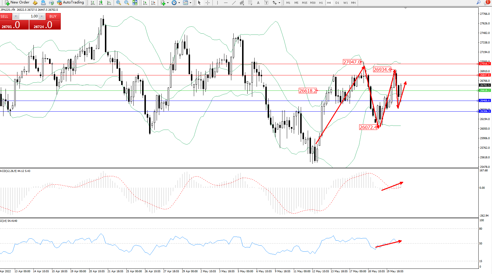 交易策略:26618上方看涨,目标26847、27016