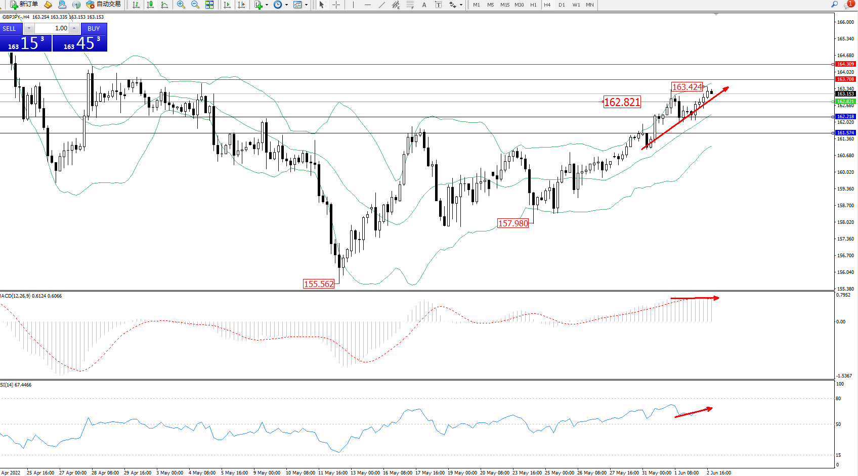 交易策略:162.821上方看涨,目标163.708、164.309