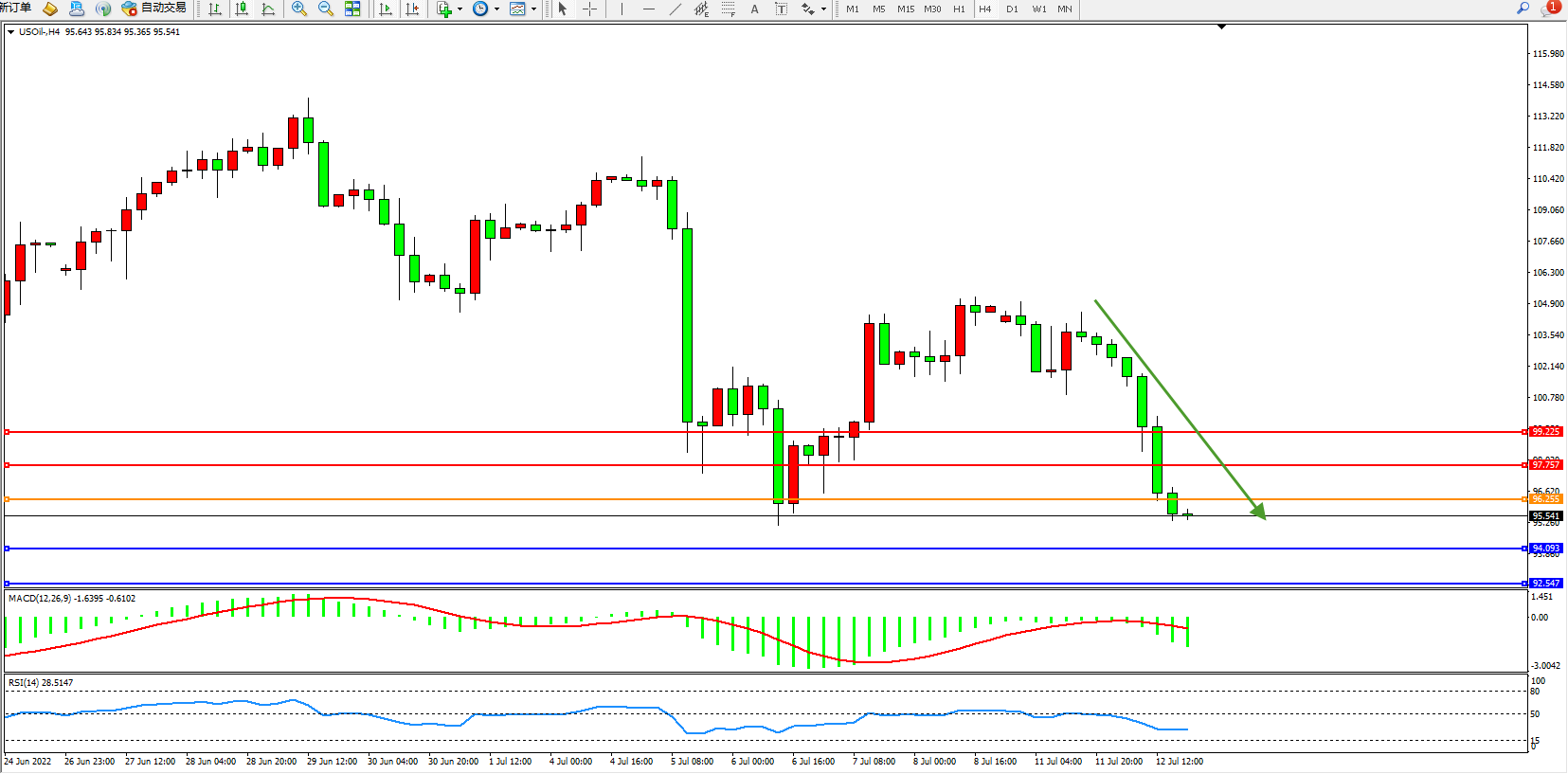 原油USOil——4小时K线图显示: