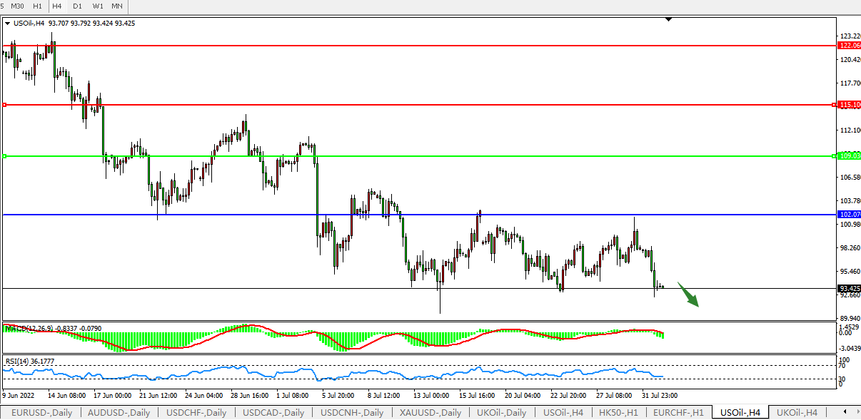 美国原油USOil 4小时图